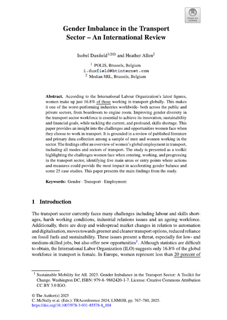 Bakran, Maja, Cahill, Rachel, Heller, Mouchka (2021) Transport innovation for sustainable deveopment: a gender perspective.