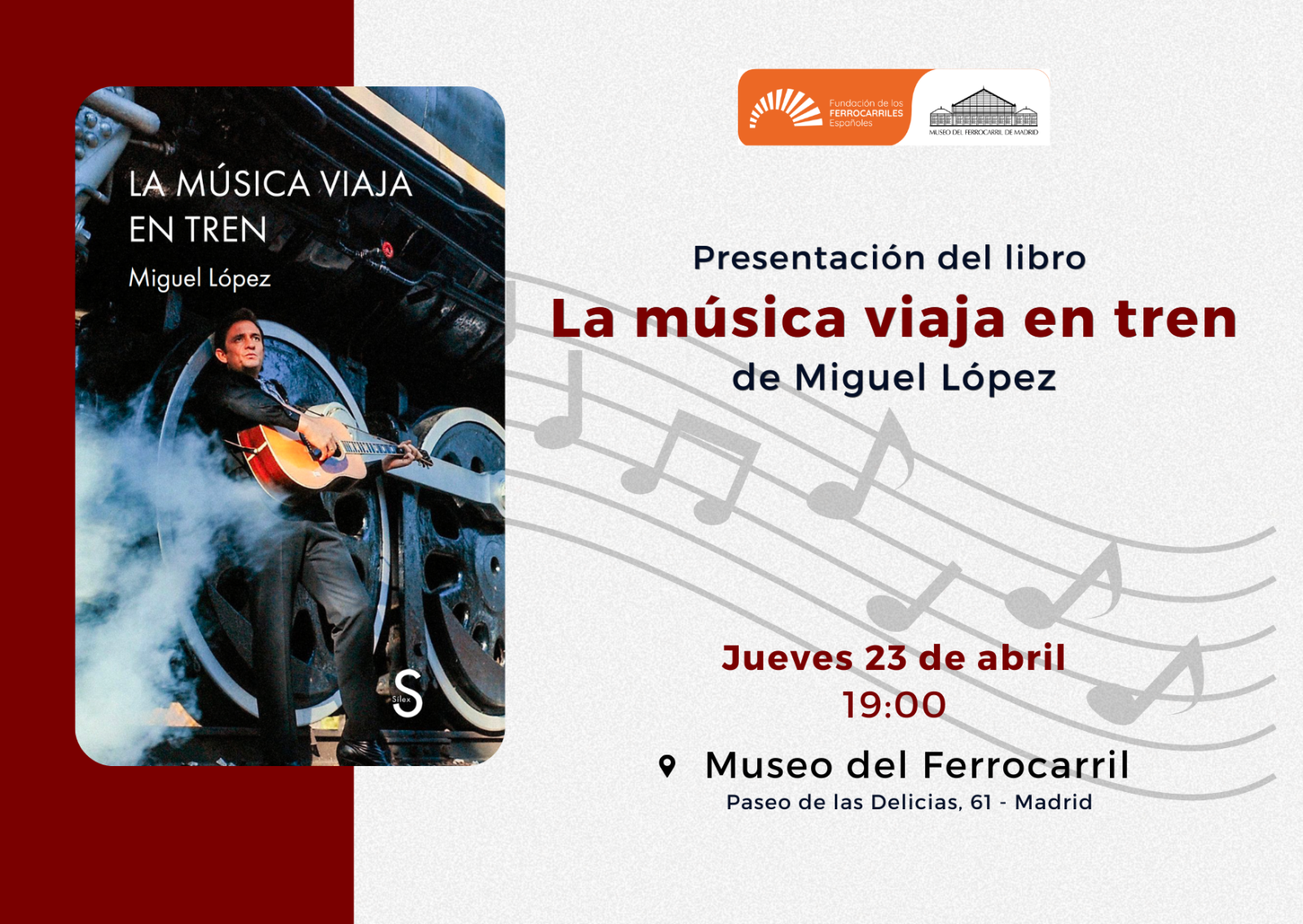 En la presentación del libro, que tendrá lugar en el museo el día 23 a las 19:00 horas, estará presente su autor, el periodista Miguel López, que contará cómo las melodías con inspiración ferroviaria se extienden por los cuatro puntos cardinales y los más grandes de la música contemporánea se han subido al tren casi desde los inicios de la historia ferroviaria.
