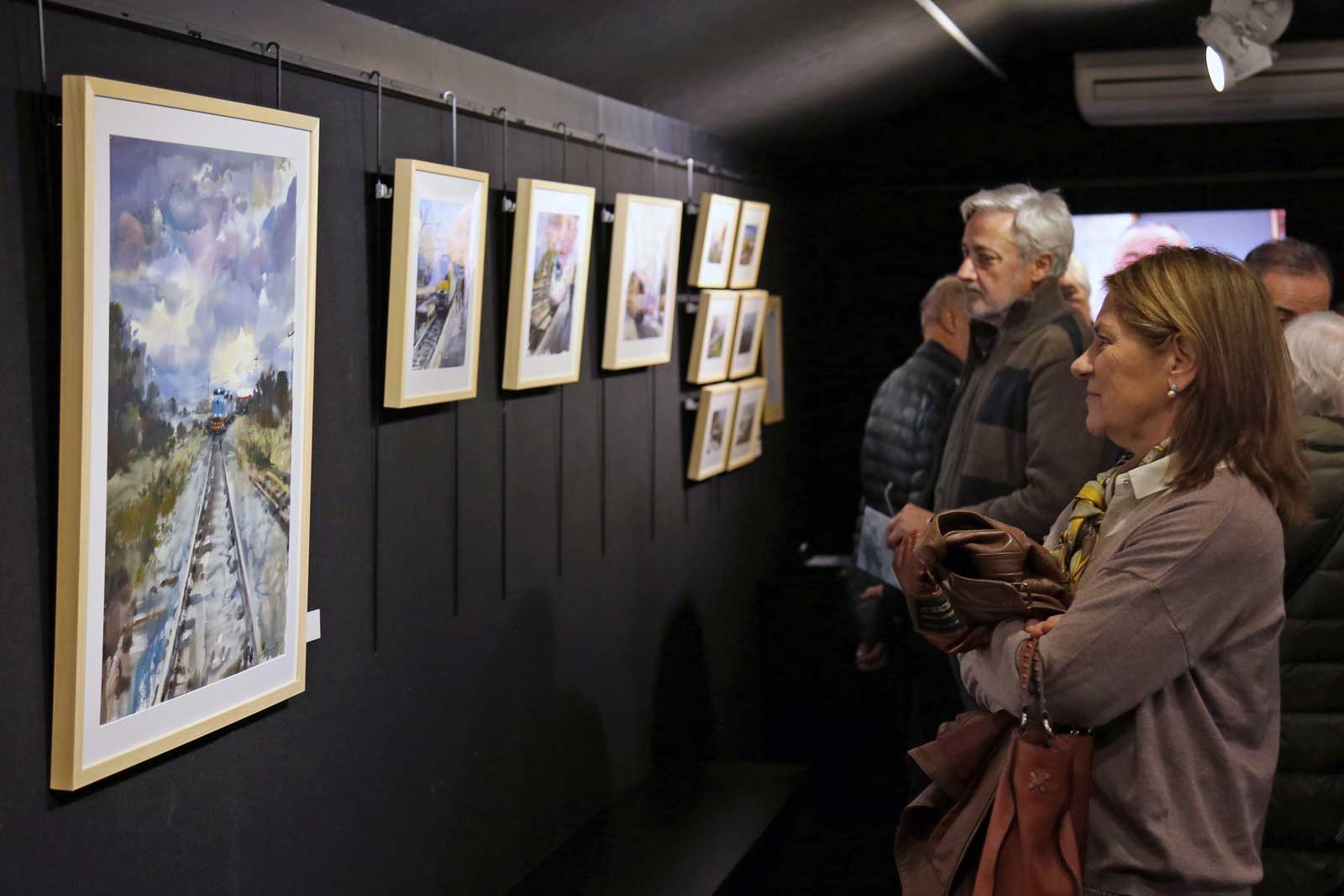 el mundo del ferrocarril a través de una cuidada selección de treinta y una acuarelas, que capturan con maestría la