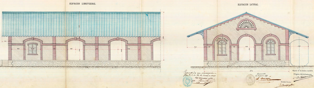 llegadas), fonda, salón real, lamparería, telégrafos, etc. La