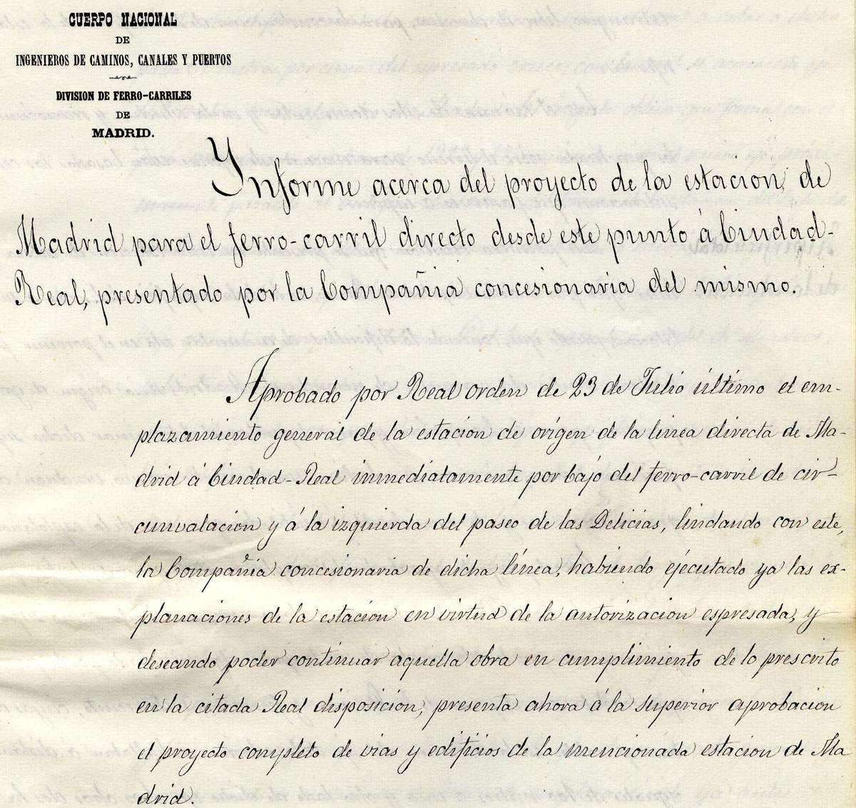 l proyecto fue realizado por Émile Cachelièvre, ingeniero civil francés contratado por la compañía CRB para la construcción de la línea férrea y de su estación cabecera en la capital. Los planos del proyecto, conservados en el Archivo Histórico Ferroviario del Museo del Ferrocarril de Madrid, están fechados el 12 de octubre de 1878 y firmados por Cachelièvre en calidad de “Ingeniero Jefe de la Construcción”. Diseñó una estación con carácter definitivo, sin construcciones provisionales que le precedieran, como fueron los casos de Atocha y Príncipe Pío. Funcional, racional y de gran superficie (incluso mayor que algunas terminales parisinas contemporáneas), se convertiría en la primera estación monumental madrileña.