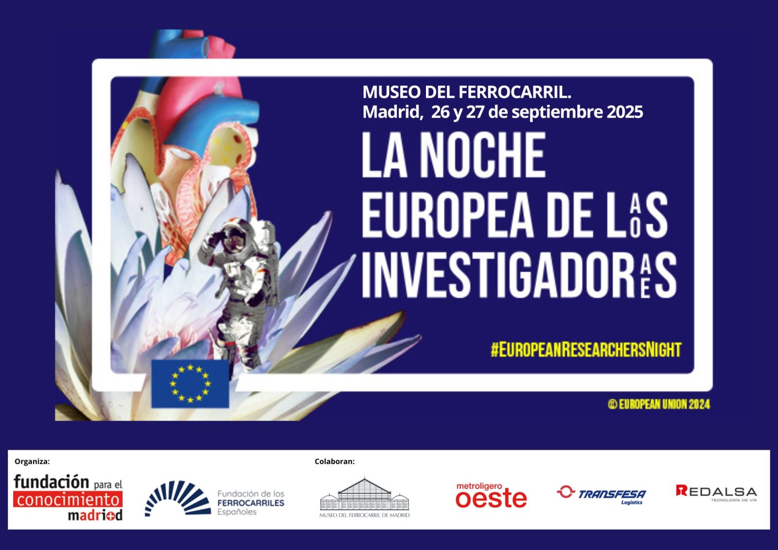 La Fundación de los Ferrocarriles Españoles participa en la XVI edición de la Noche Europea de los Investigadores de Madrid, coordinada por la Fundación para el Conocimiento madri+d, con un programa de actividades que se desarrollará en el museo. Este año se celebrará los días 26 y 27 de septiembre y, con motivo de su 40.º aniversario, la Fundación presentará algunos de los últimos desarrollos tecnológicos, de investigación e innovación del ferrocarril en España.