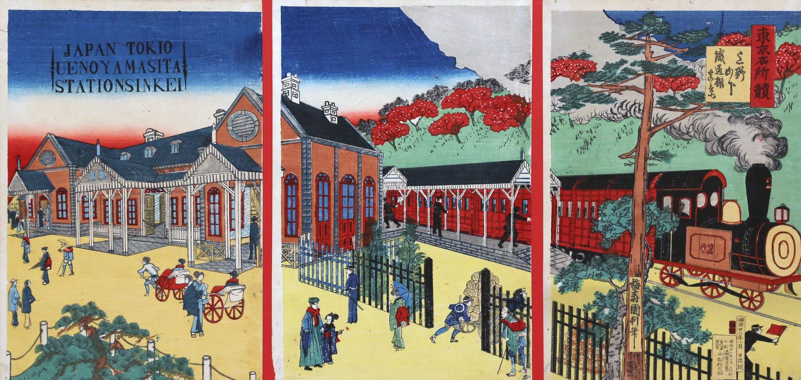 Artistas como Hiroshige III, Chikuyō, Ikkei, Kasamatsu, Kokunimasa, Kunichika, Kuniteru II, Kunisana II, Kunitoshi, Kyochika, Shigekiyo, Yoshitora o Yoshitoshi actuaron como cronistas visuales de una sociedad en cambio, incorporando la locomotora de vapor al imaginario del ‘mundo flotante’. En sus composiciones, el tren atraviesa paisajes tradicionales, cruza puentes y convive con templos, campos y figuras cotidianas, integrándose con naturalidad en escenas de delicada belleza.