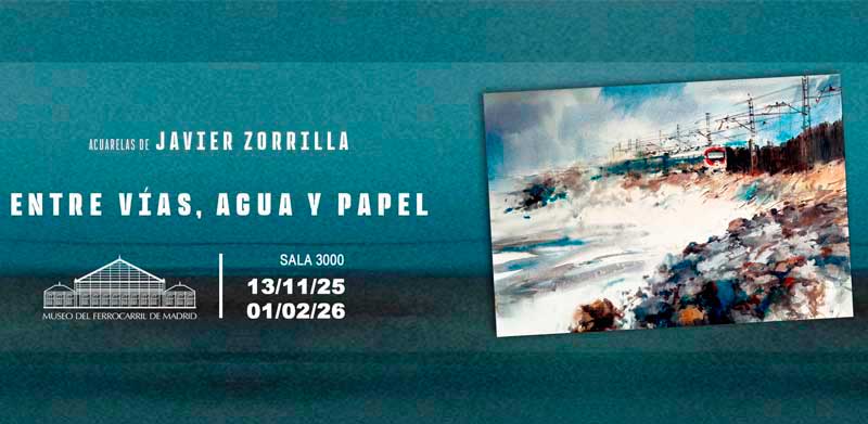 12/11/2025'Entre vías, agua y papel' - Javier ZorrillaLa exposición nos invita a recorrer el mundo del ferrocarril a través de una cuidada selección de treinta y una acuarelas, que capturan con maestría la esencia y la estética del ferrocarril en sus distintas formas y espacios. Vehículos, estaciones, pasajeros, paisajes... todo emerge como símbolo, como recuerdo diluido en capas de memoria translúcida. |