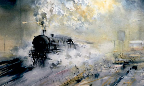 31/12/2019'Orígenes y destino' - Manuel AlcedoSu obra evoca recuerdos que como profesional del ferrocarril ha ido atesorando y nos muestra un mundo ferroviario propio, plagado de imágenes que todos tenemos en la memoria. Engrana con los orígenes de la acuarela clásica y nos evoca a los primeros acuarelistas ingleses del siglo XIX; como William Turner, John Sell Cotman y Thomas Girtin, pioneros de esta técnica que están presentes en los cuadros. |