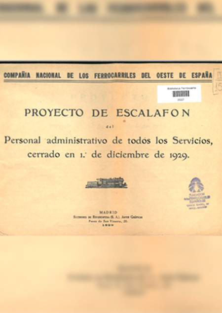 Compañía Nacional de los Ferrocarriles del Oeste de España (1929) Proyecto de escalafón del personal administrativo de todos los servicios, cerrado en 1º de diciembre de 1929.